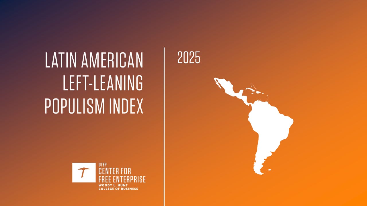 We’re excited to unveil the Latin American Left-Leaning Populism Index (LALLPI)—a new way to measure active populism across the region from 2000 to 2019 by the Center for Free Enterprise at UTEP.